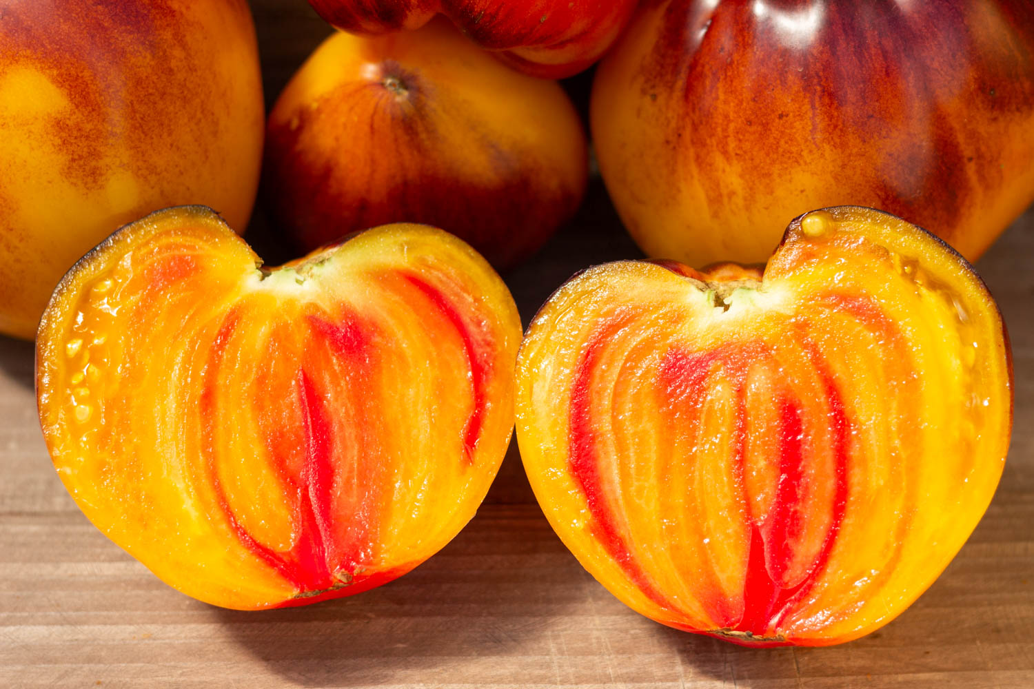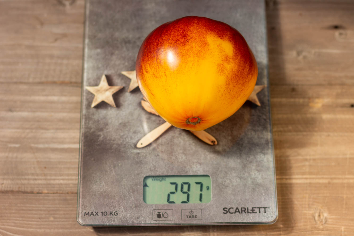 Высокорослый до 2 метров, среднеспелый. Плоды сердцевидной формы, би-колоры – желто-малиновые с антоцианом на плечиках, массой 300-500гр. Ствол и листва тонкого строения.