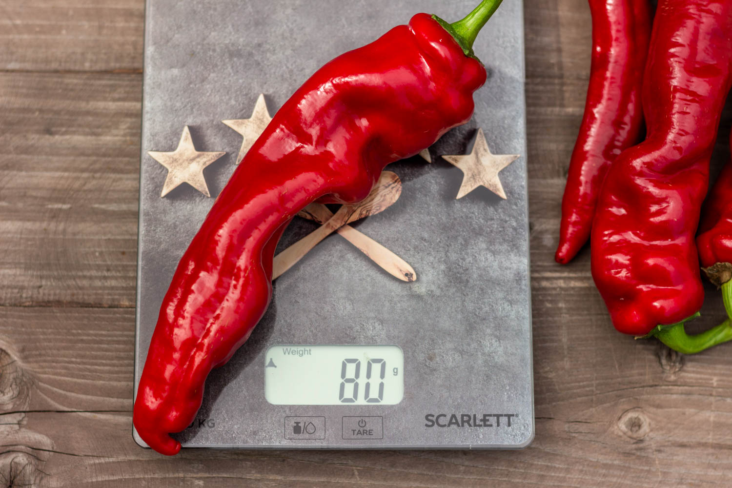Среднерослый 70см, полу-раскидистый. Стручки в форме рога длиной до 16см. В технической спелости зеленого цвета, в биологической красного. Острота умеренная.