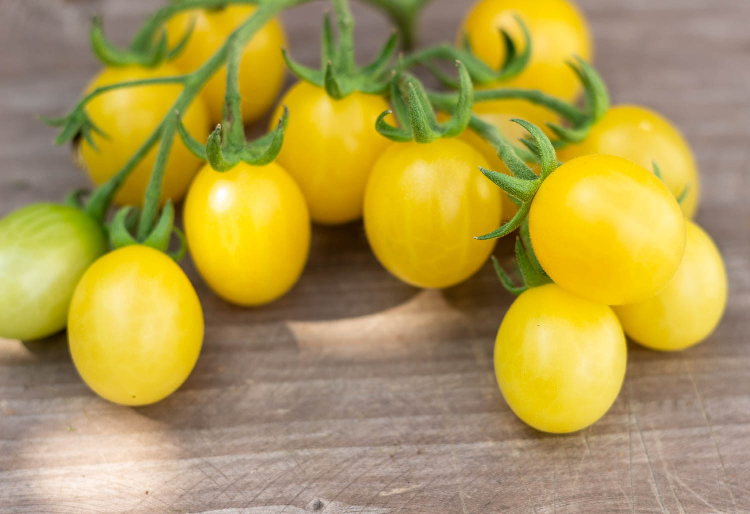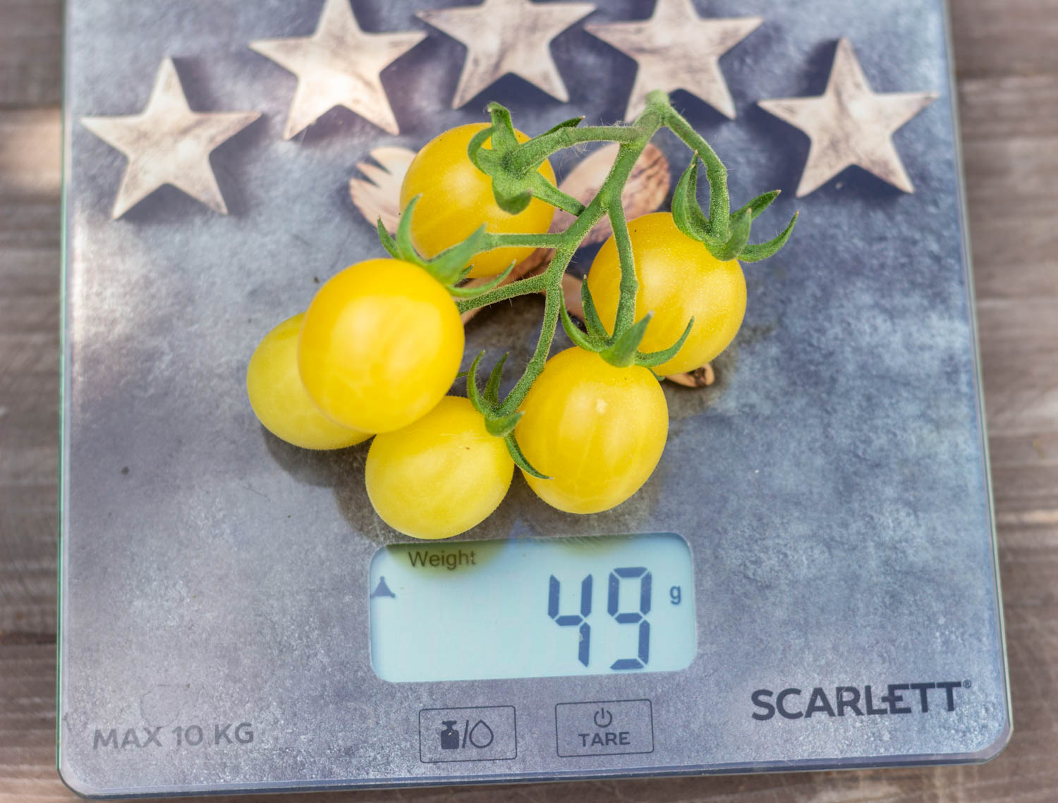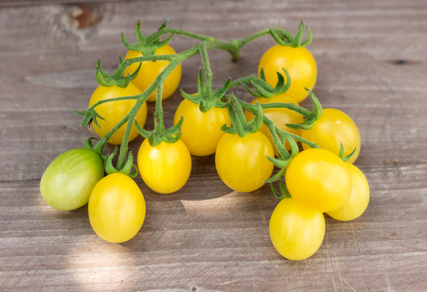 Высокорослый томат-черри до 1,8м, среднеспелый. Плоды овальные, кремового цвета, массой 5-10гр. Вкус нежный, сладкий. Кисточки простые, скромные.