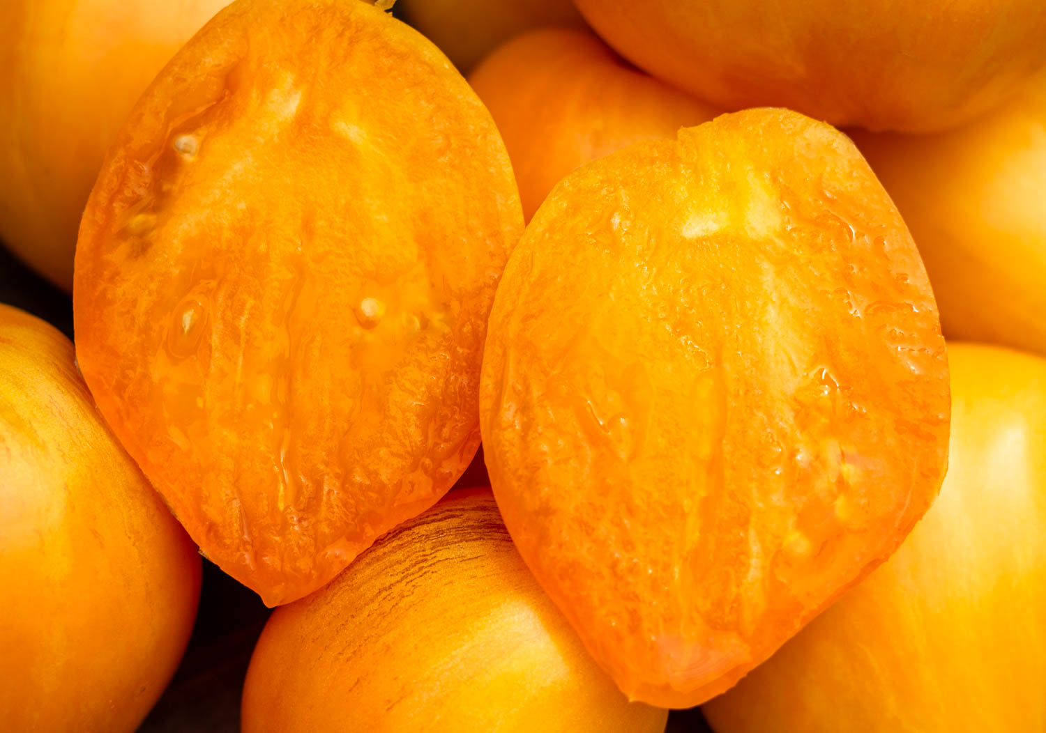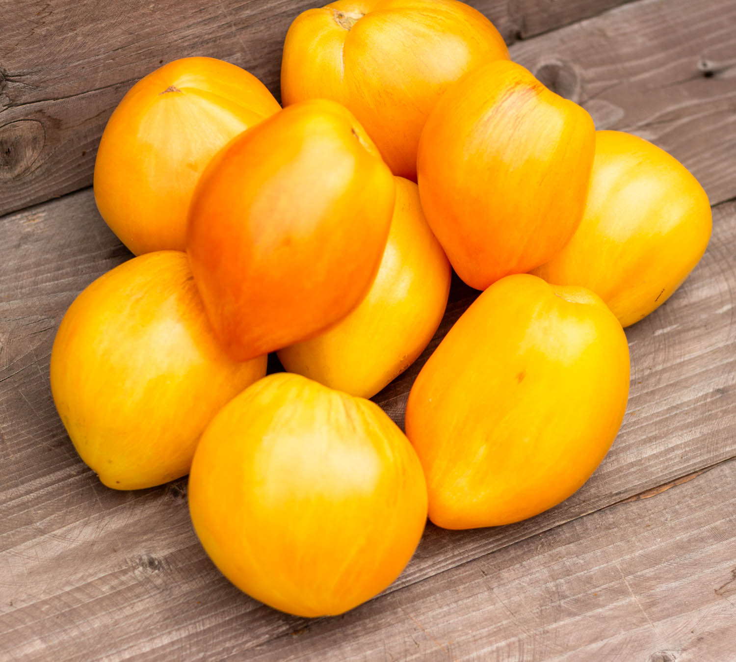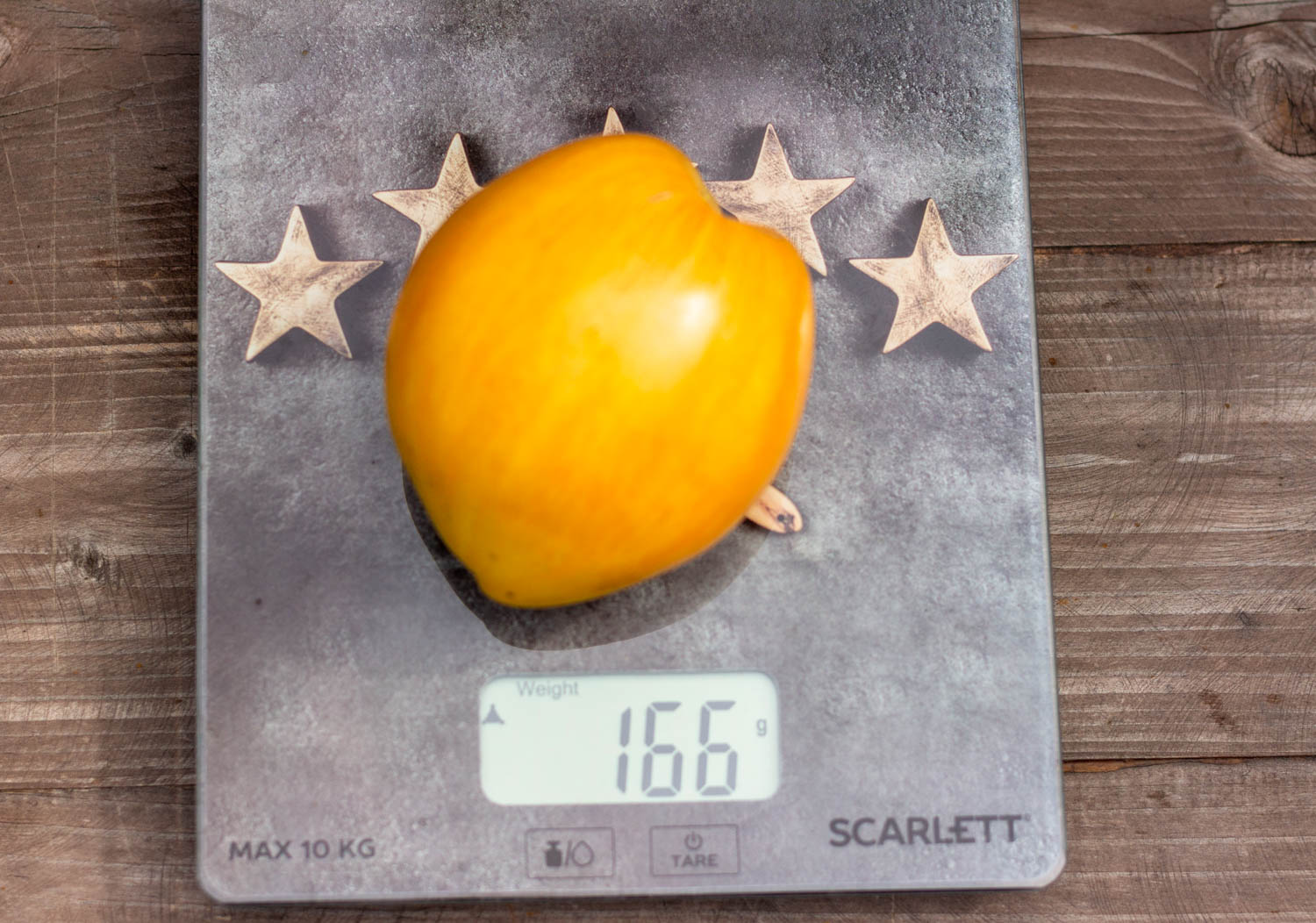 Высокорослый до 2 метров, раннеспелый. Плоды сердцевидной формы, немного ребристые у плодоножки, желтого цвета с кремовыми полосками, на плечиках небольшие мазки антоциана, массой 150-200гр. Очень вкусные! Кисть раскидистая со множество плодов.
