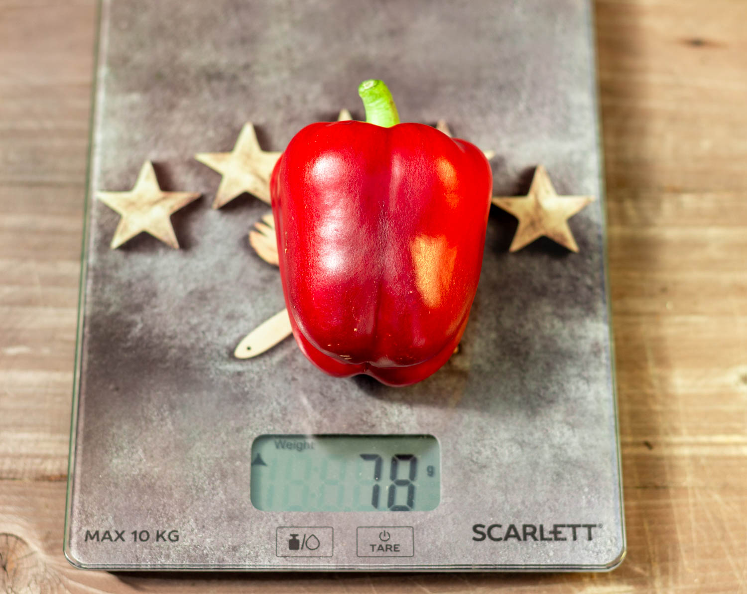 Среднерослый 50-70см, полураскидистый. Среднеспелый. Плоды кубовидные, массой 80гр. Толщина стенки 5мм. Созревает от фиолетового до малинового цвета