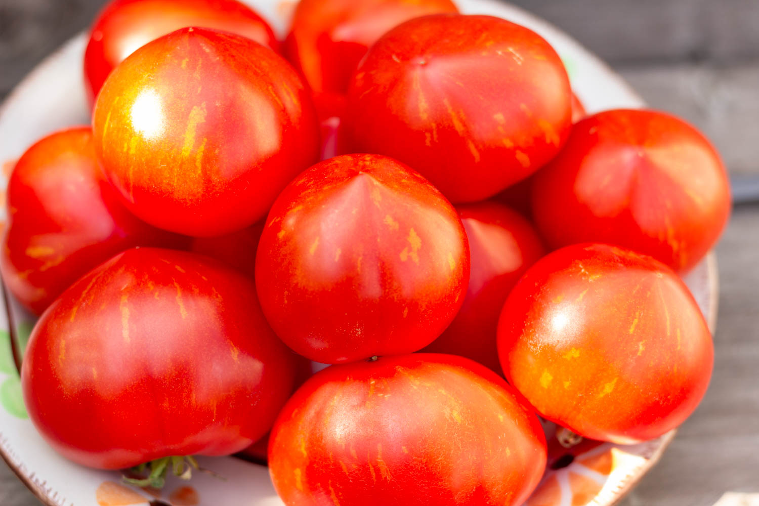 Среднерослый до 1,2м, среднеранний, очень урожайный сорт. Томаты небольшие сердечки массой до 100гр, красного цвета с оранжевыми полосками. Мясистые и сочные. Лист картофельное типа. Можно выращивать без формировки.