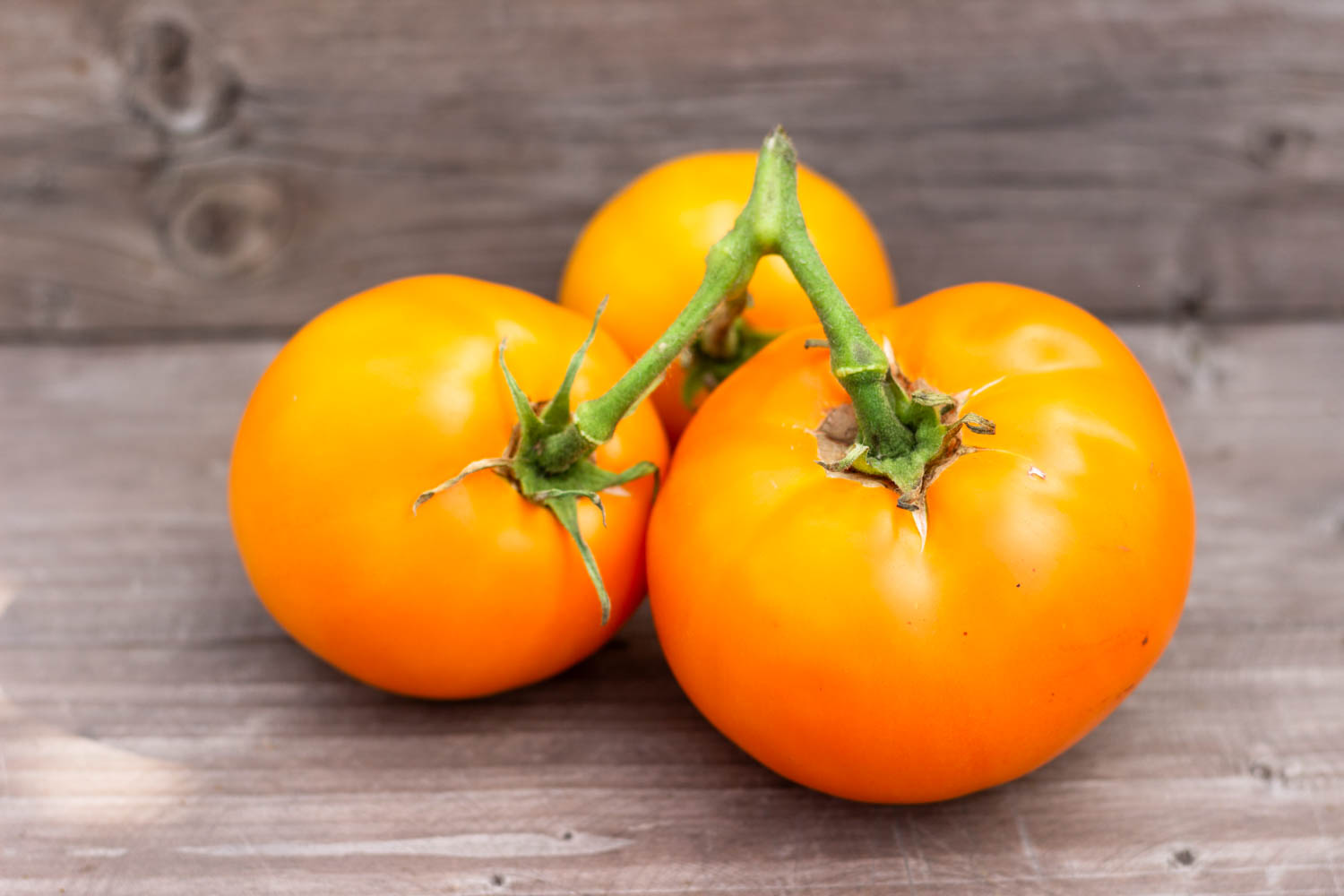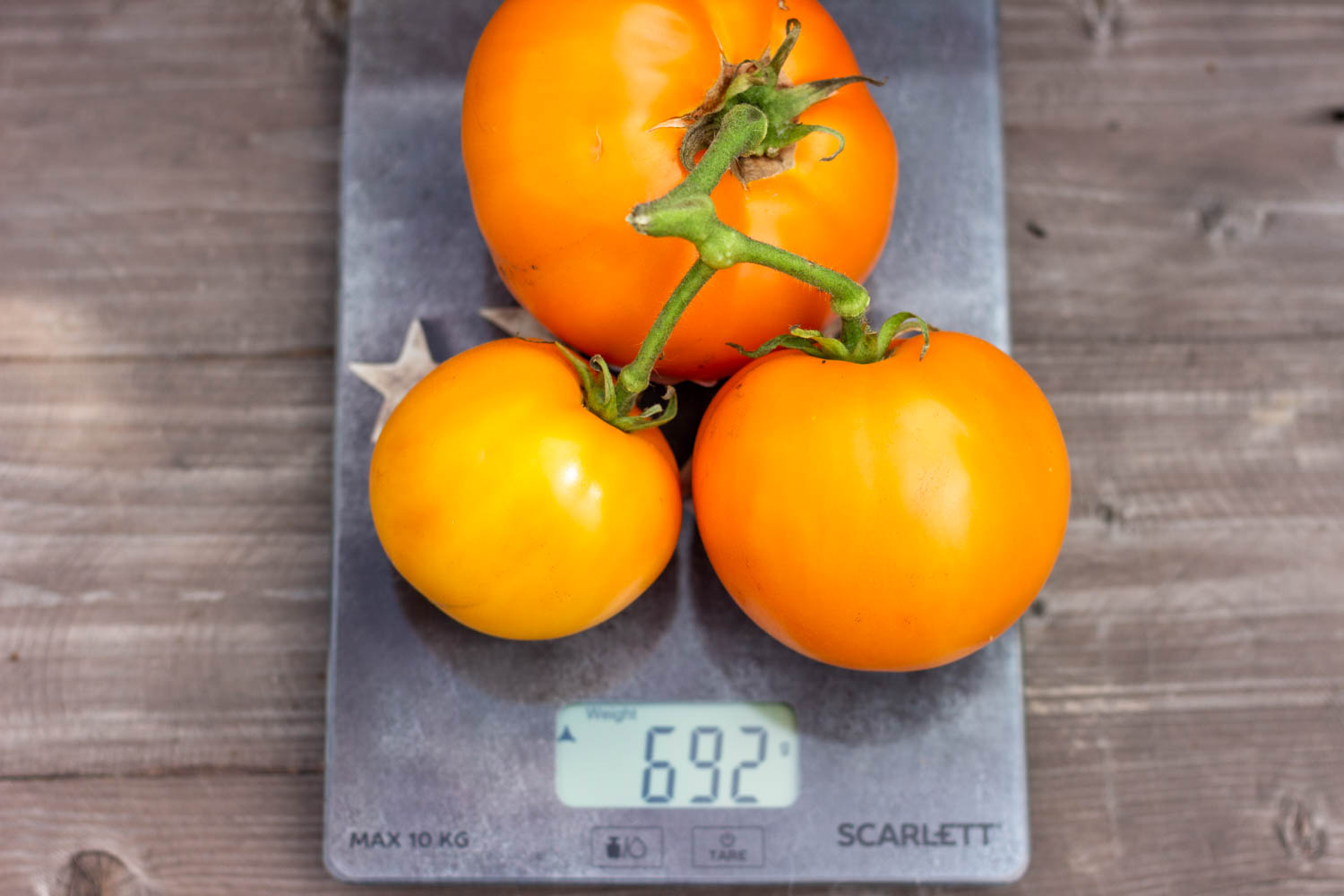 Томатный гном высотой 1,2м, среднеспелый. Плоды овальные, оранжевого цвета, массой