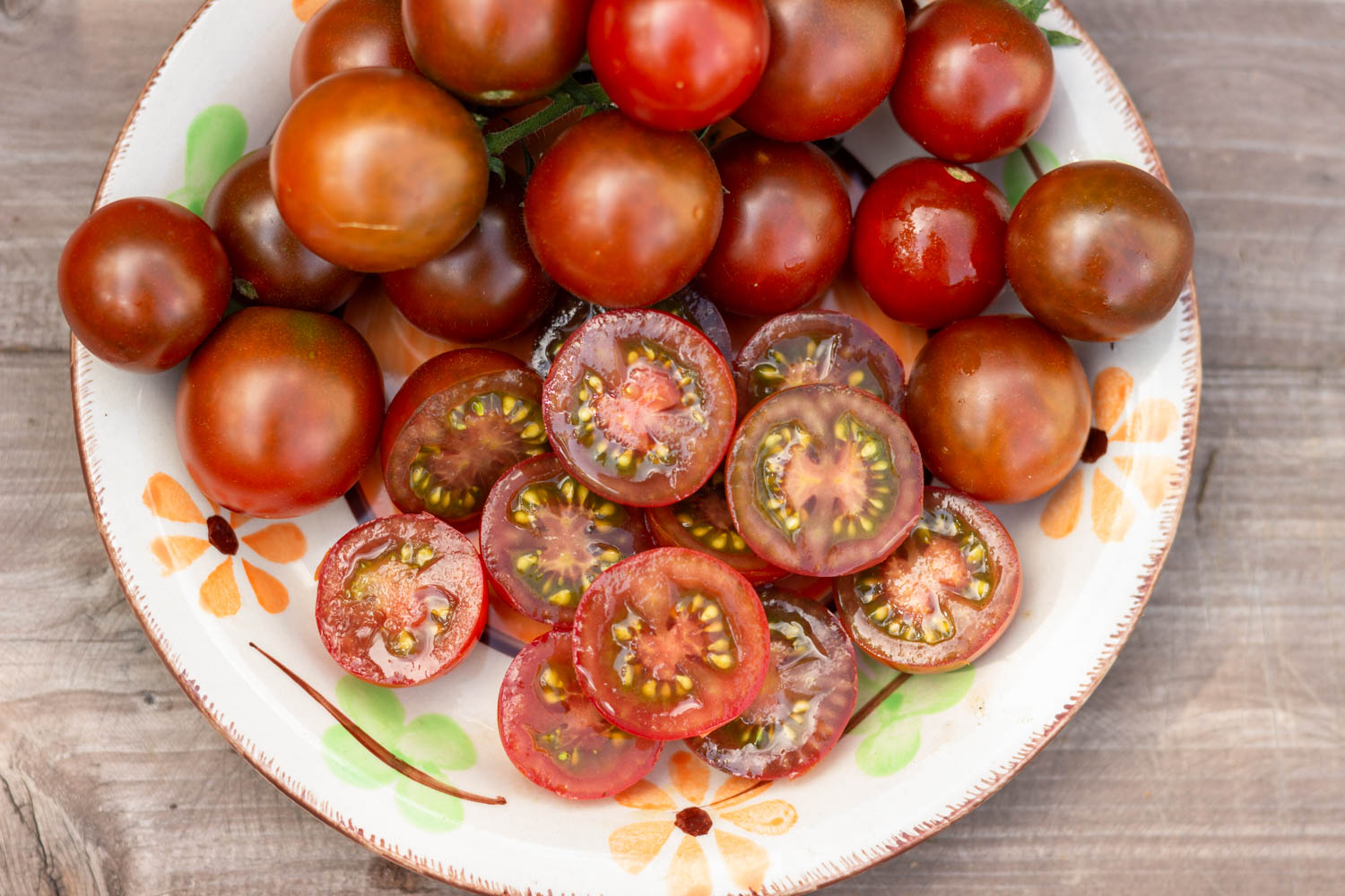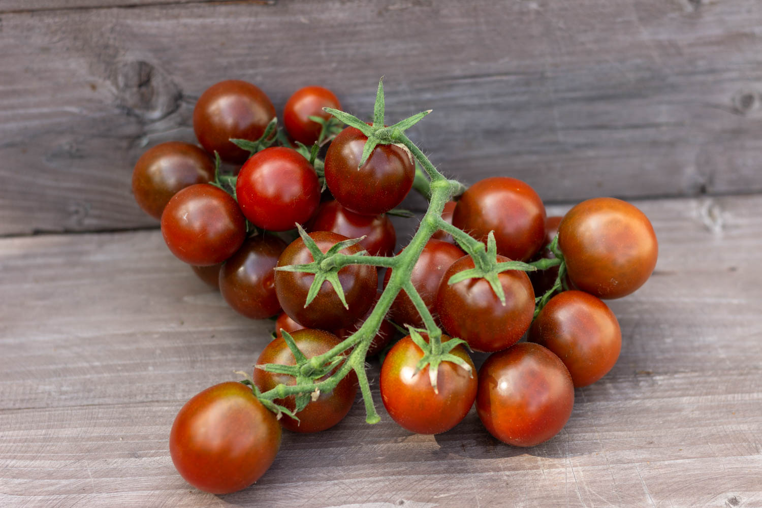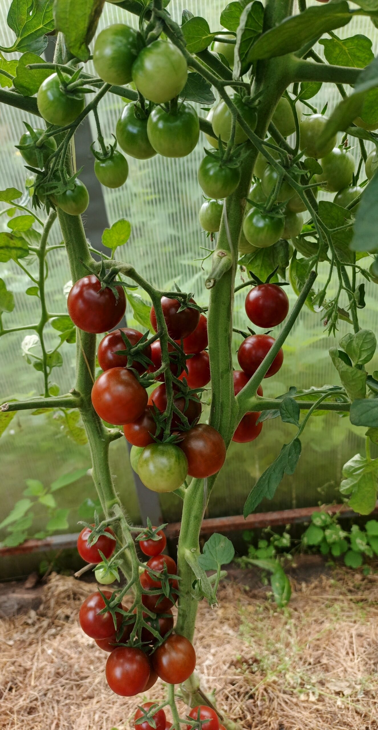 Высокорослый черри до 1,8м, среднеспелый. Плоды округлые, шоколадного цвета, массой 15-20гр. Плотные, сладкие. Кисти поджатые, ровные, завязываются без остановки.