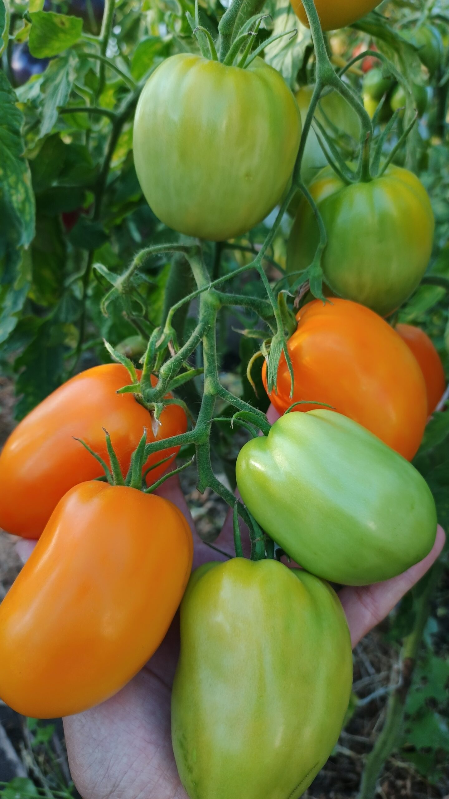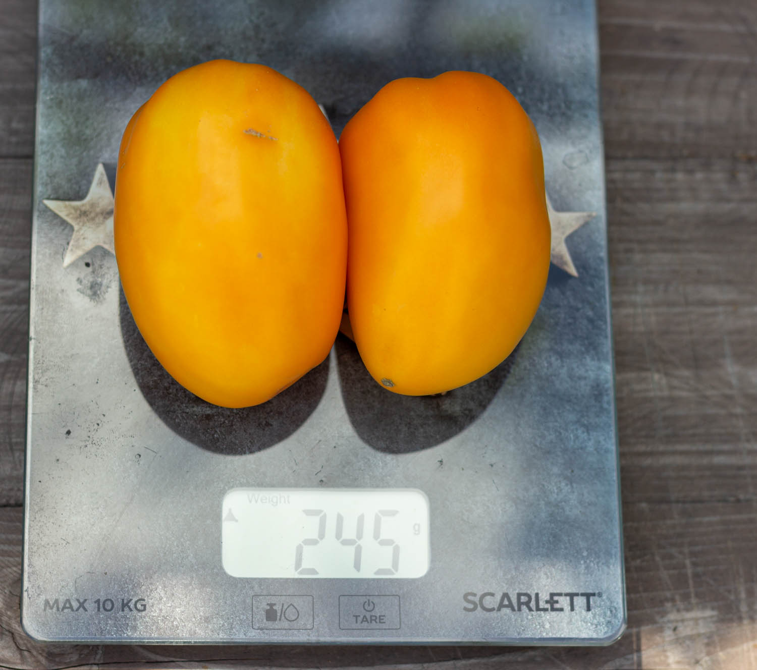 Высокорослый до 1,8м, среднеспелый. Плоды пухлые ровные сливы, желто-оранжевого цвета, массой 120-170гр. Мякоть густая, со-сладостью, вкусная. Кисть простая с 5-6 томатами. Завязываемость отличная.