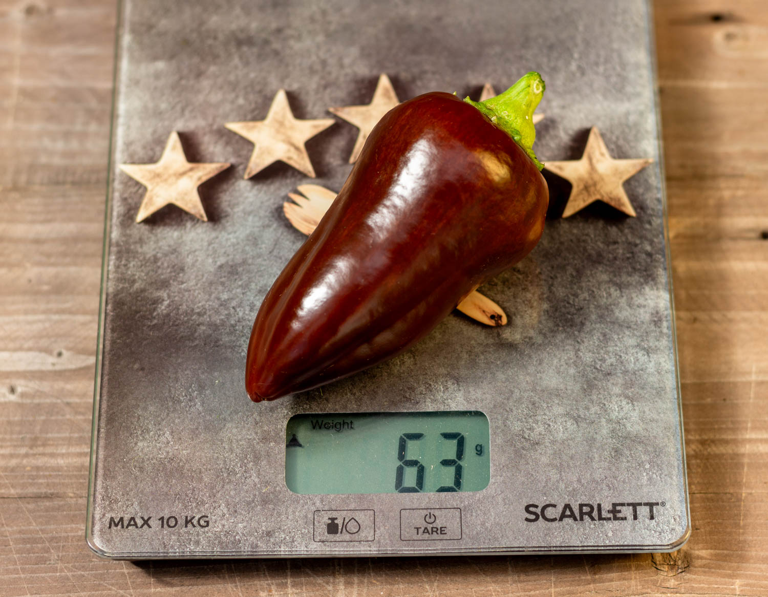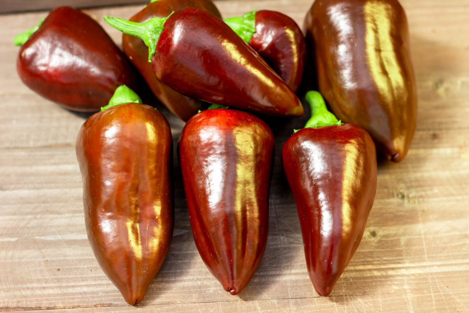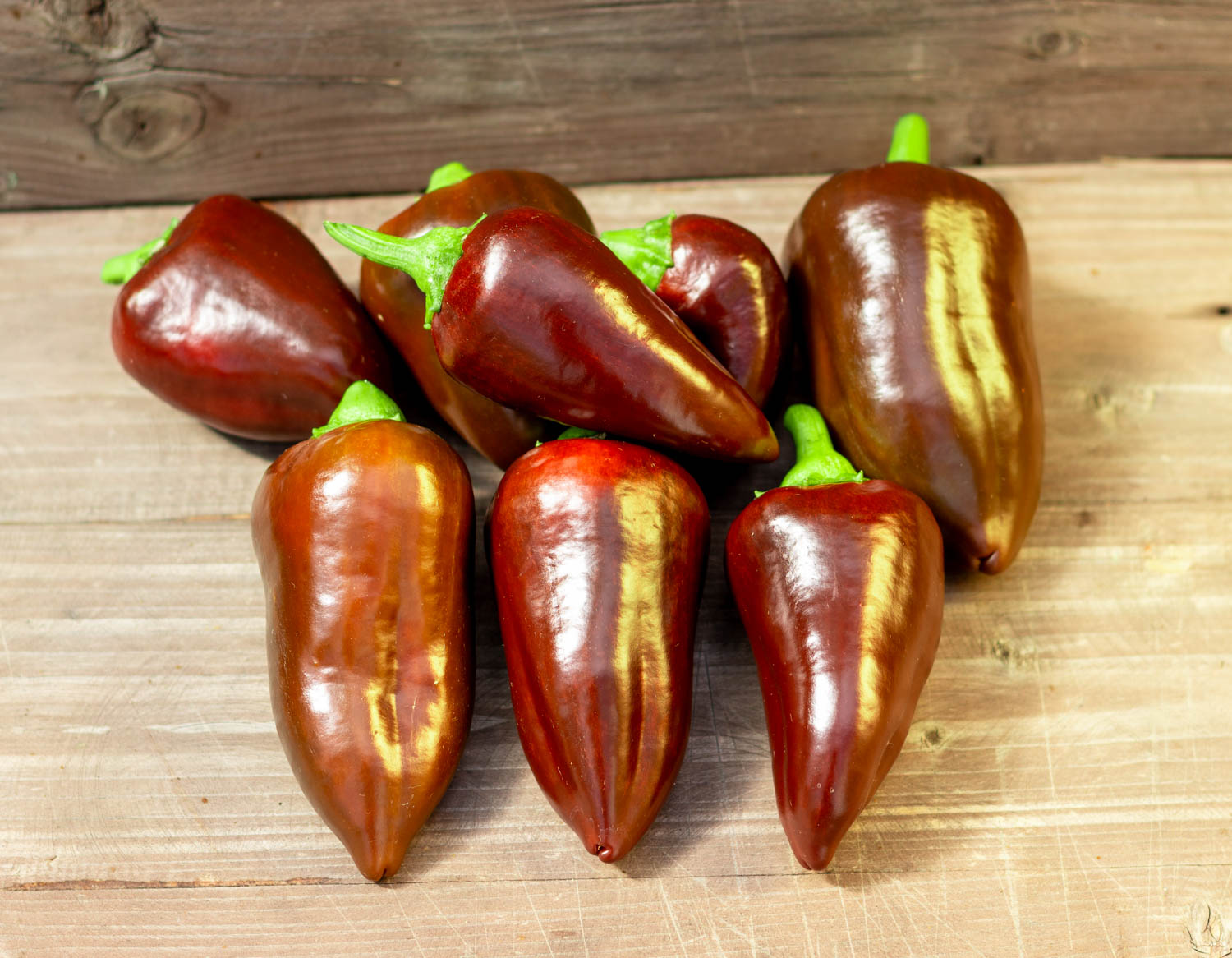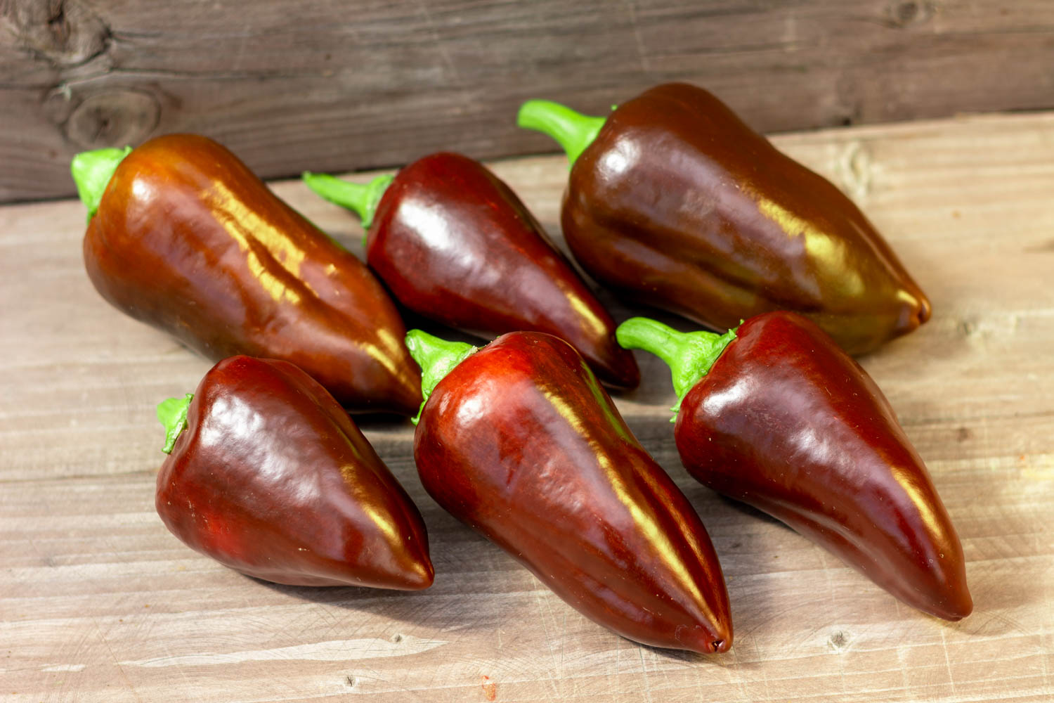 Среднерослый до 70см, среднеспелый. Плоды небольшие, конусовидные, глянцевые, шоколадного цвета. Масса 60-80гр. Толщина стенки 5мм.