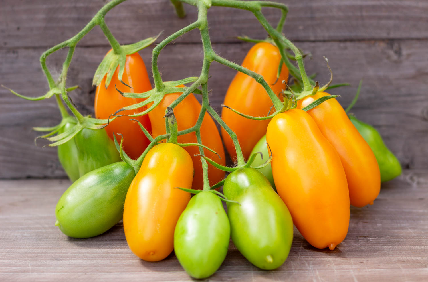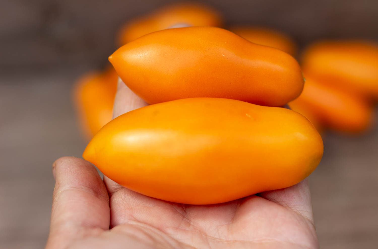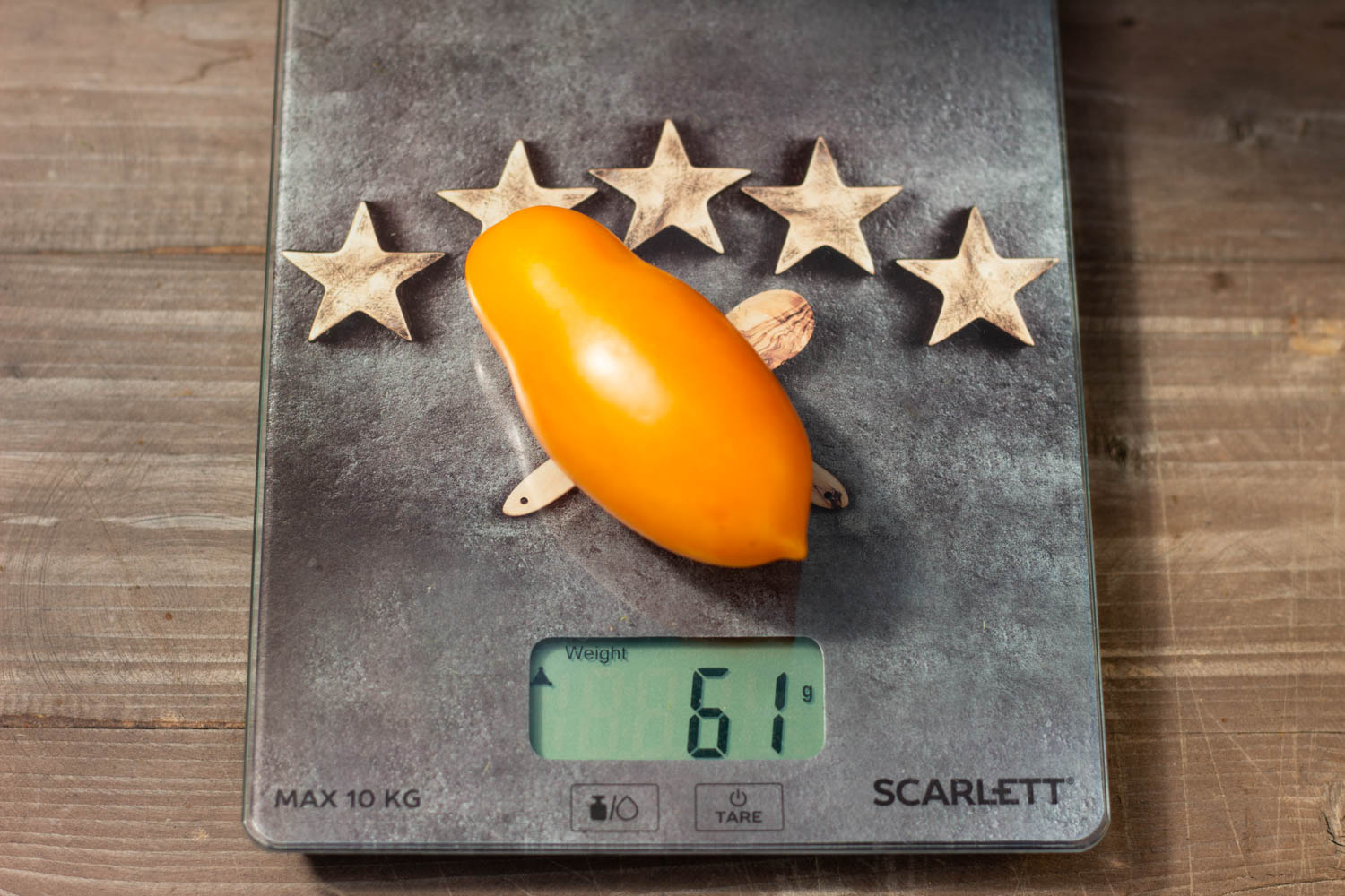 Высокорослый до 2 метров, среднеспелый. Плоды пальчиковой формы с пипочкой, абрикосового цвета, массой 60 гр. Плотные, без кислоты. Кисти промежуточного типа до 15шт. Строение куста обычное.
