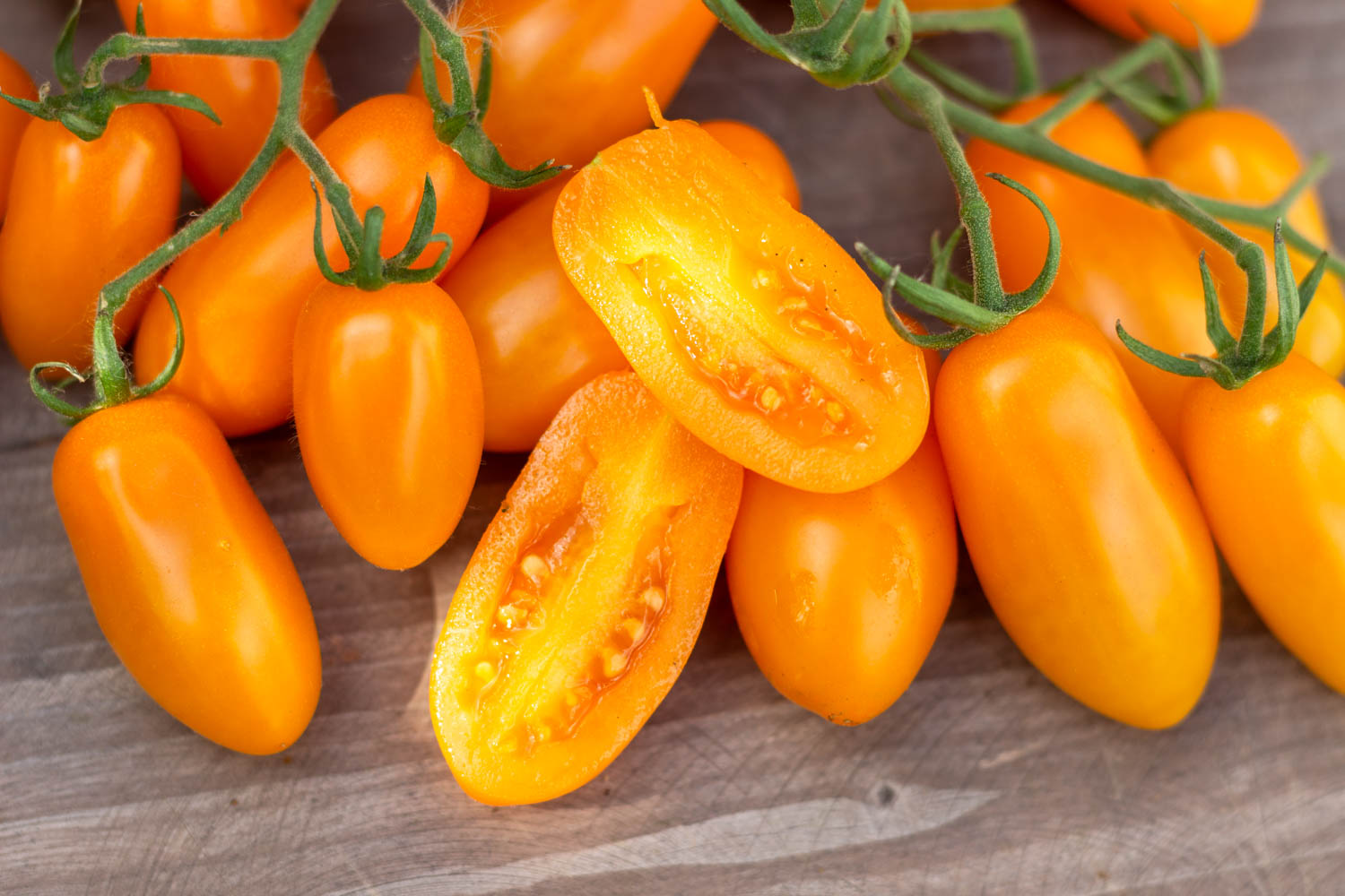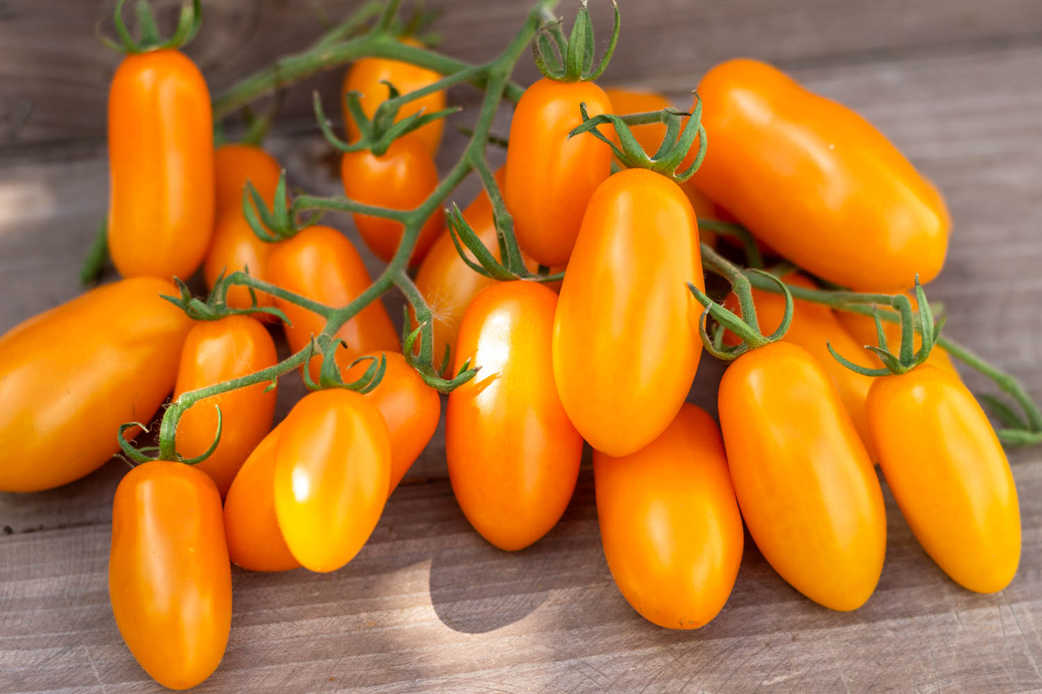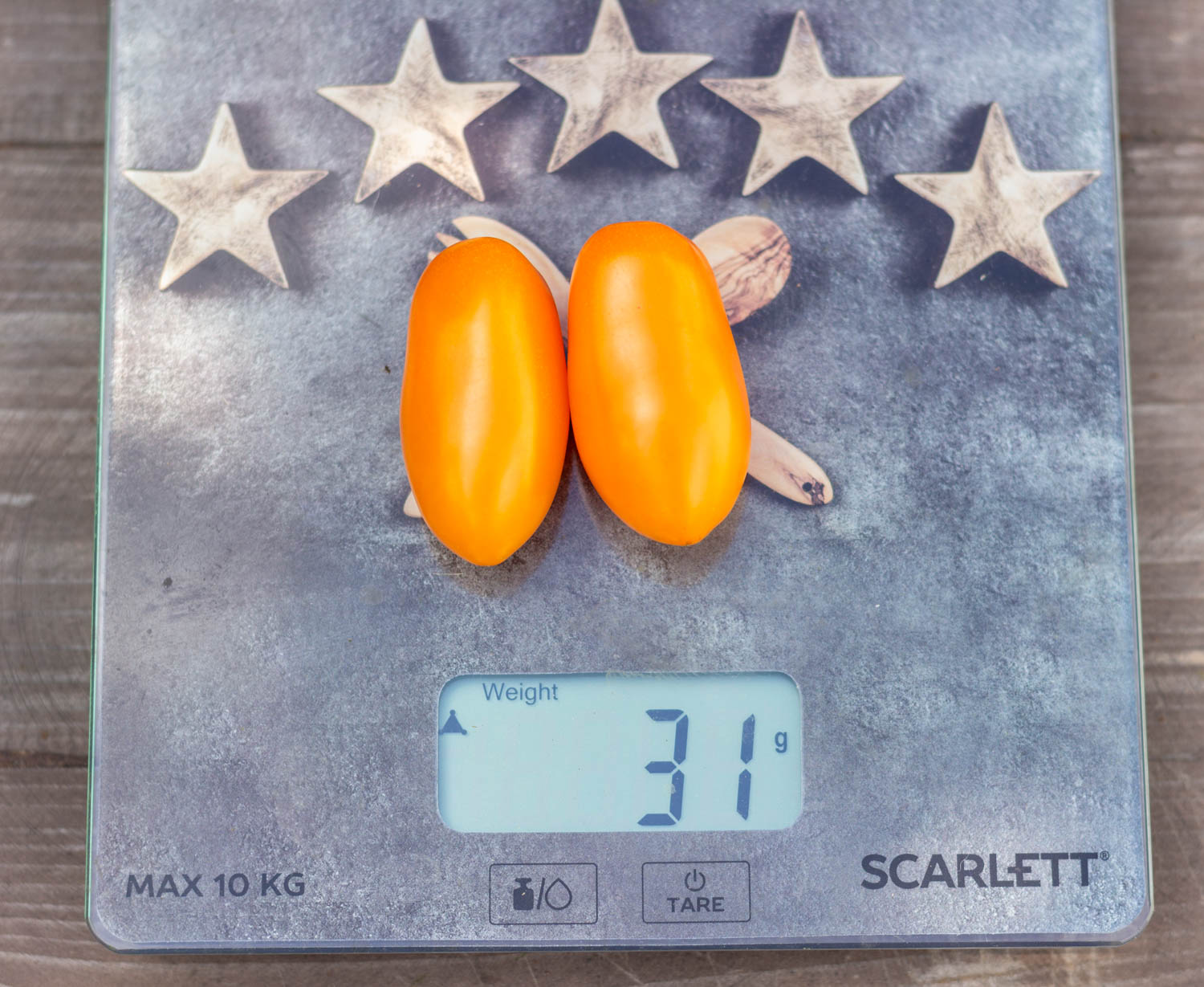 Высокорослый томат более 2м, среднеспелый. Плоды удлиненные сливки, глянцевые, оранжевого цвета, массой 15-20гр. Плотные, сладкие. Кисти длинные с 20 томатами.