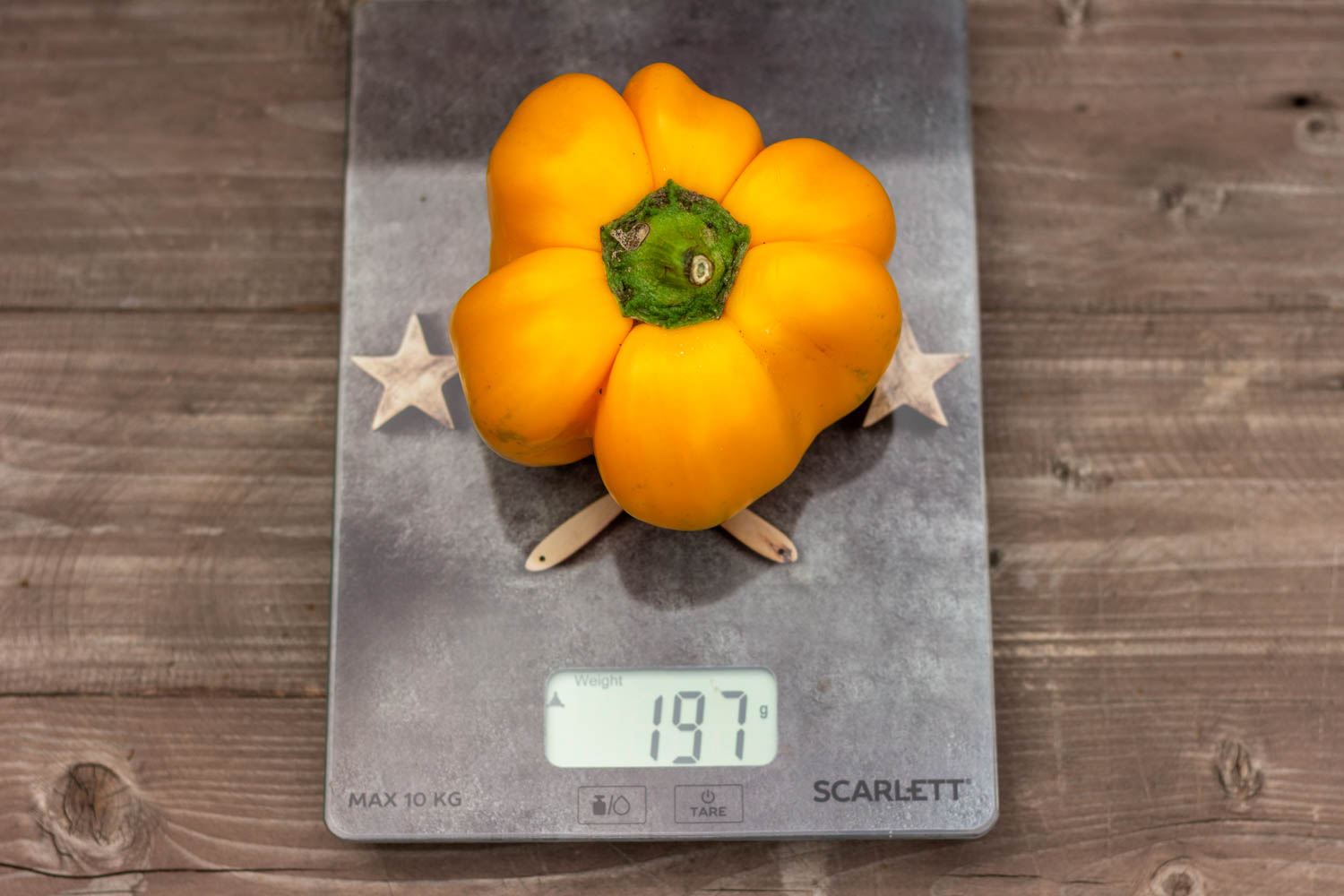 Среднерослый около 70см, среднеспелый. Плоды сортотип ратунда — плоскоокруглые, дольчатые, желто-оранжевого цвета, массой 120-200гр. Толщина стенки 5-7мм. Куст полураскидистый, выращивать с подвязкой каждого стебля.