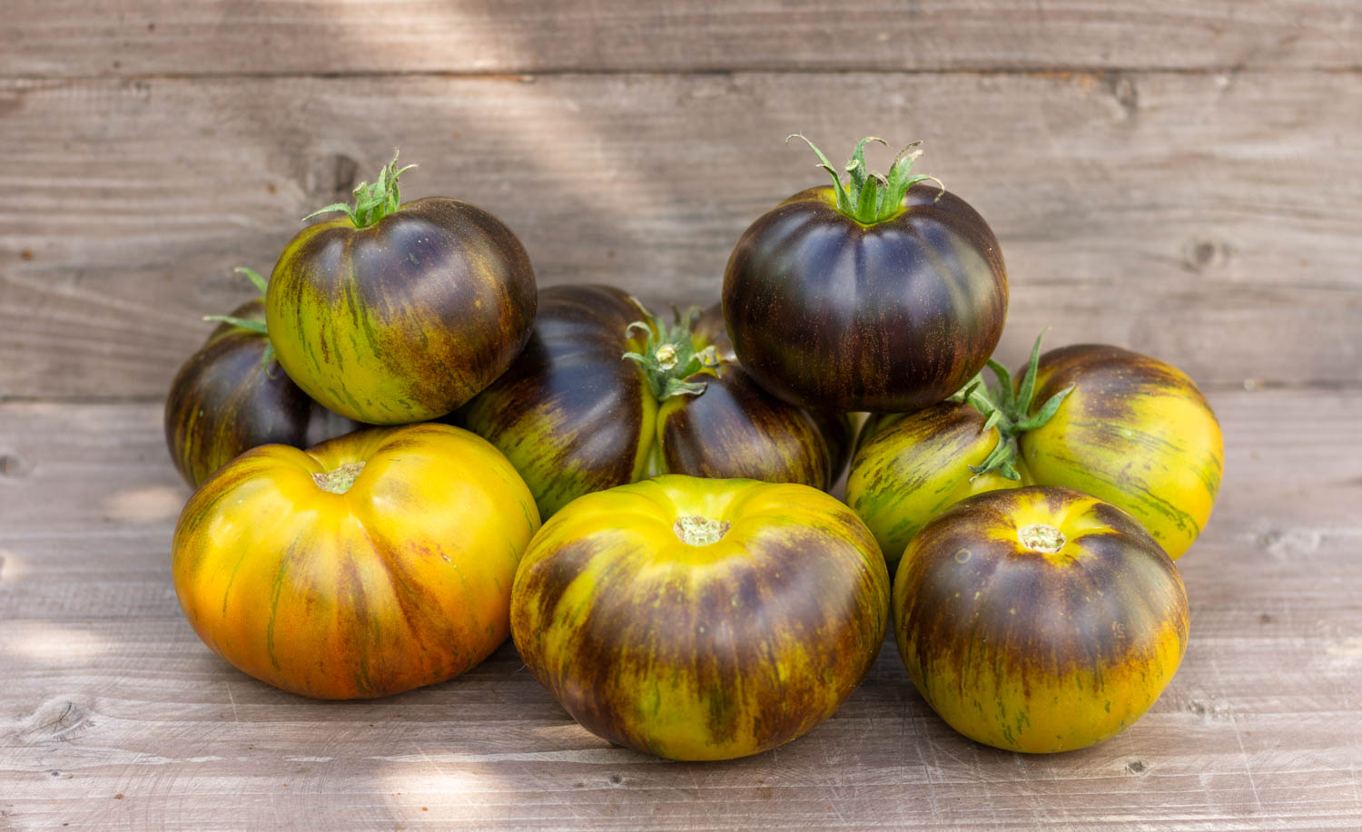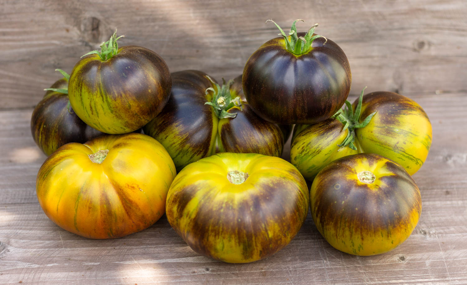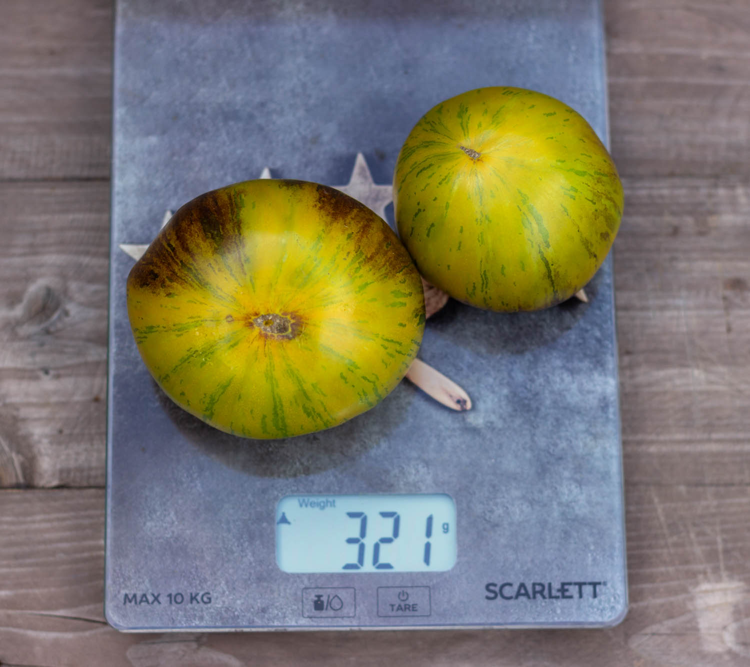 Томатный гном высотой 1м, среднеспелый. Плоды плоскоокруглый, пышные, янтарно-зеленого цвета с антоцианом, массой 150-200гр. Куст крепкий, лист простой морщинистый.
