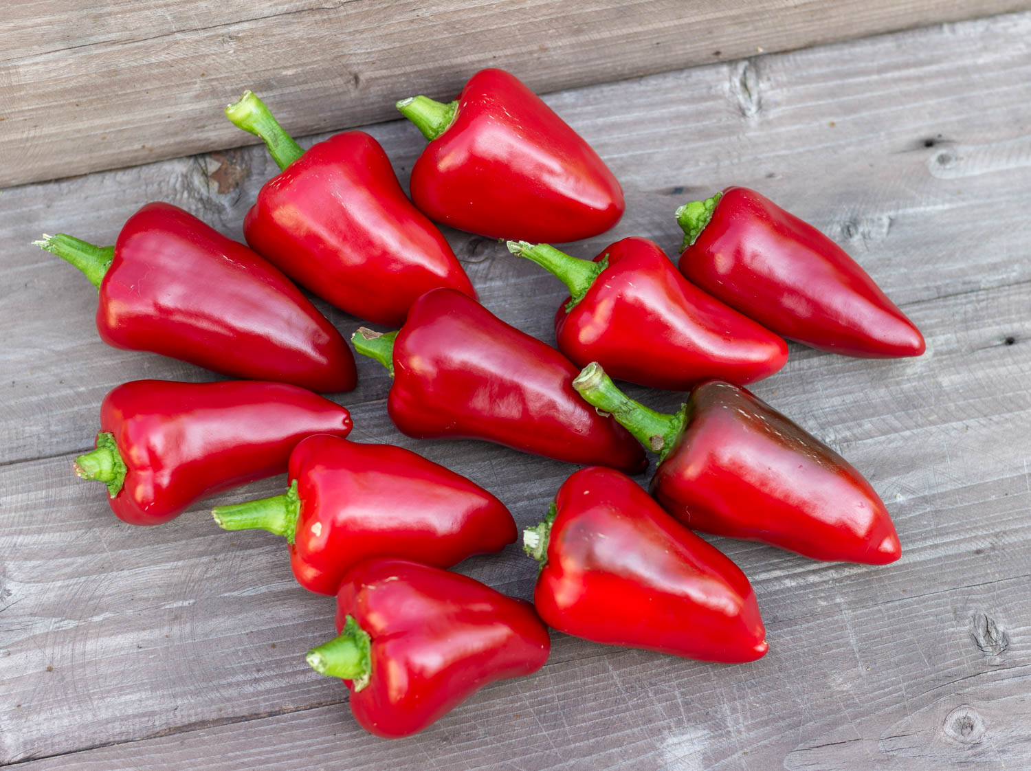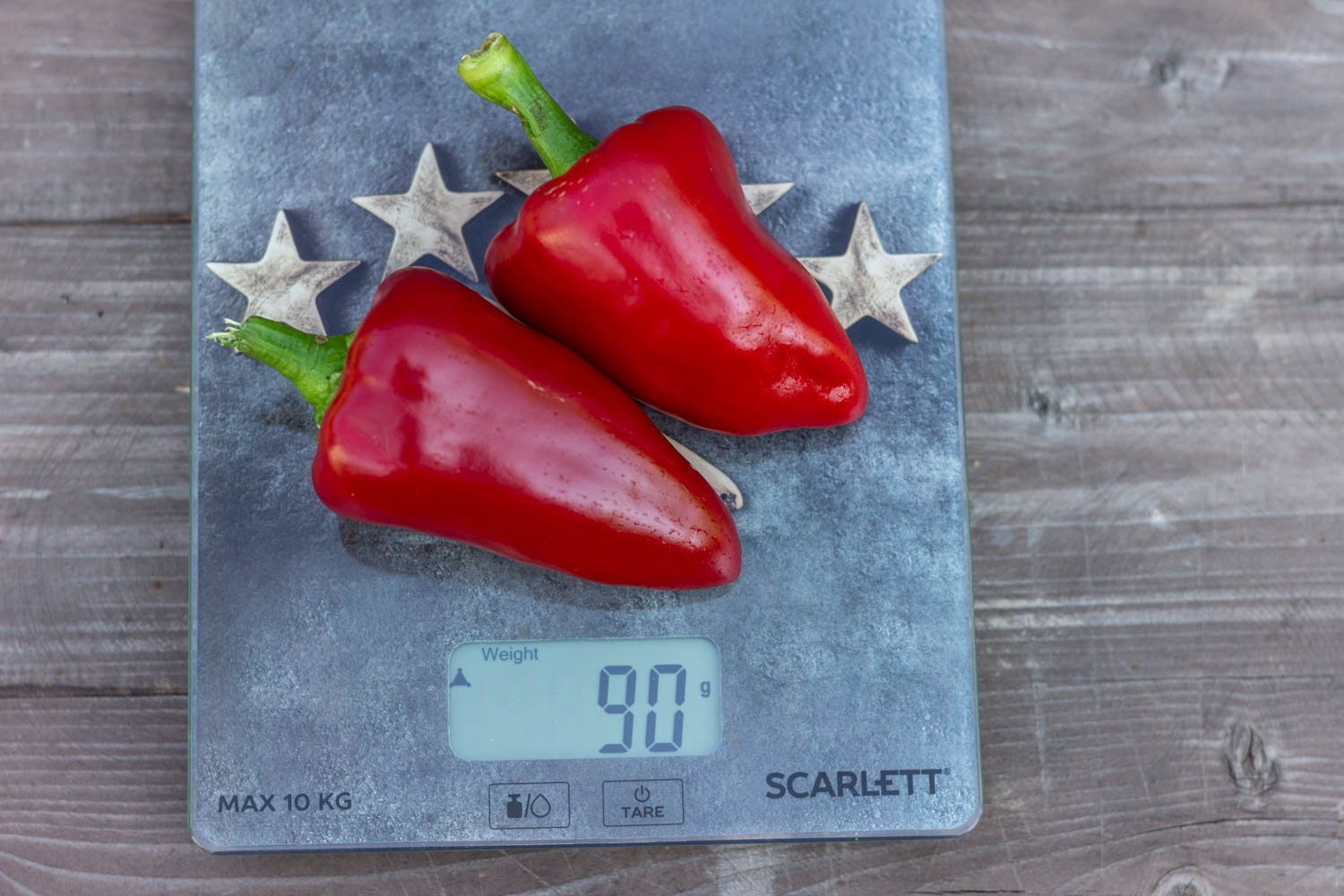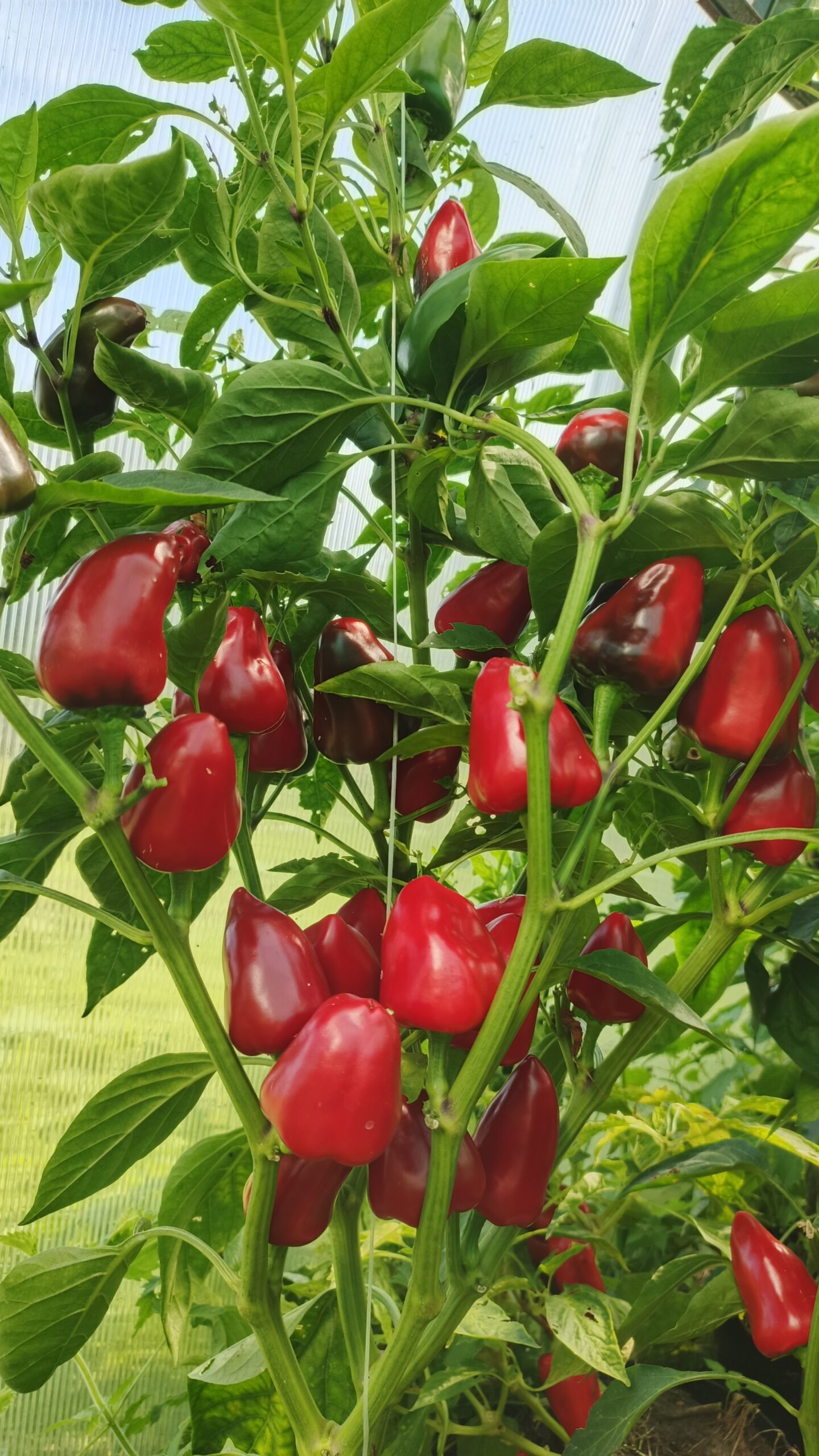 Высокорослый, мощный, до 1,5м. Плоды конусовидные, растут вертикально вверх. Масса 50гр. Толщина стенки 5мм. Созревание от темно-зеленого до малинового.