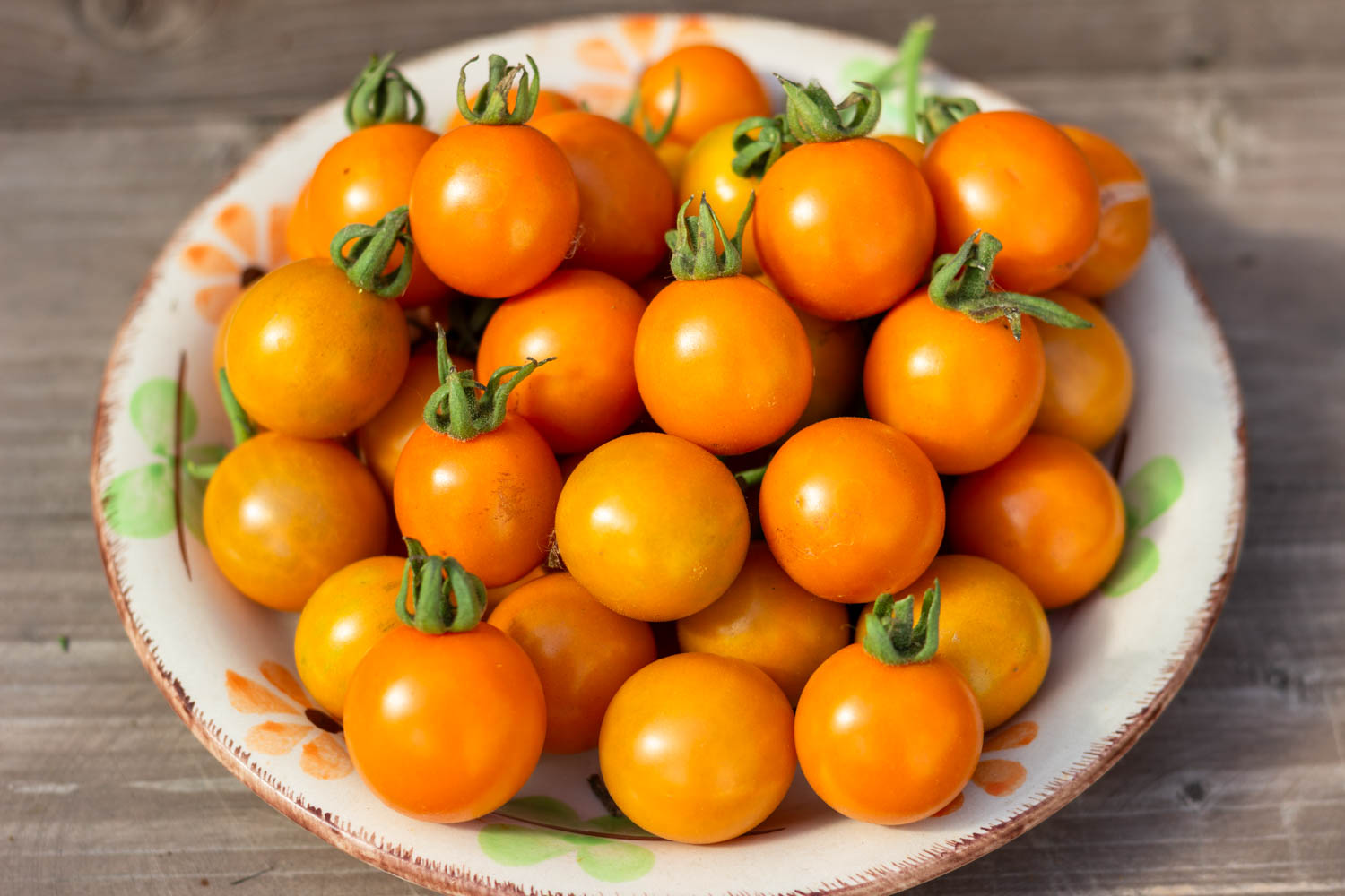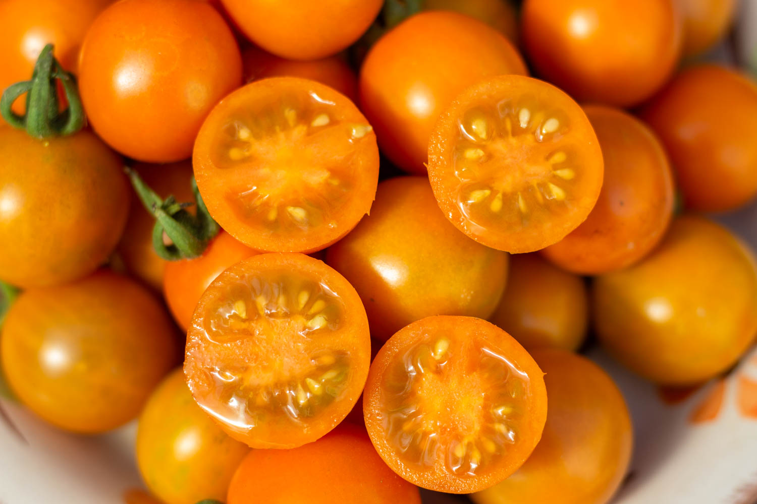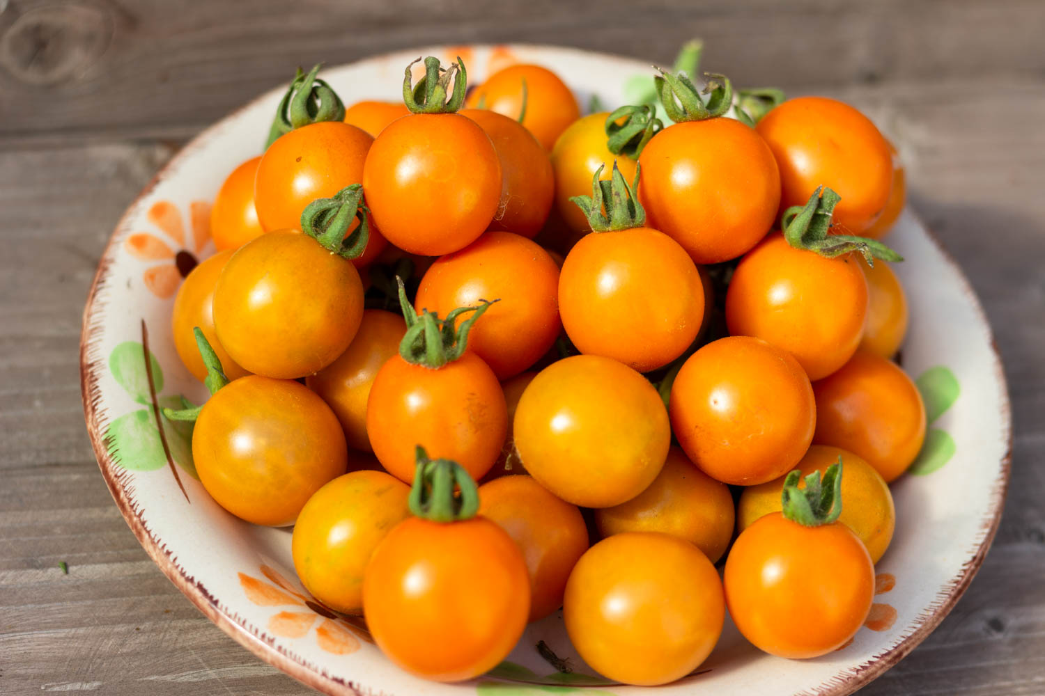 Высокорослый более 2м, среднеспелый. Плоды округлые, темно-оранжевого цвета, массой 10-15гр. Вкус яркий — с нотками тропических фруктов, присутствует и сладость, и кислинка. Кисти простые и промежуточного типа.
