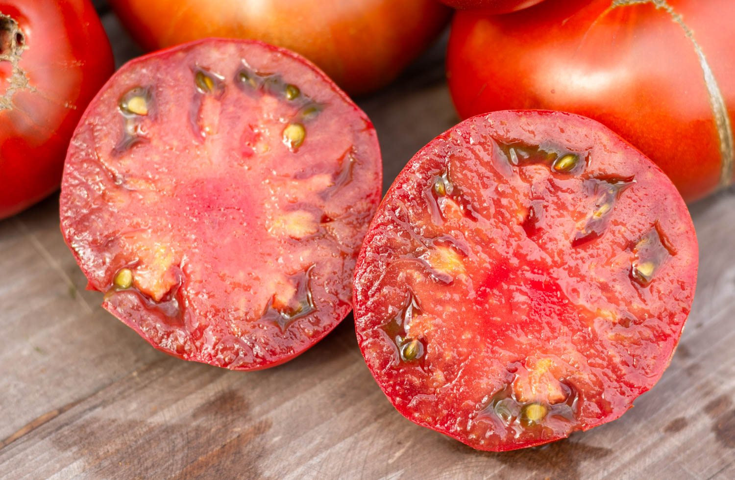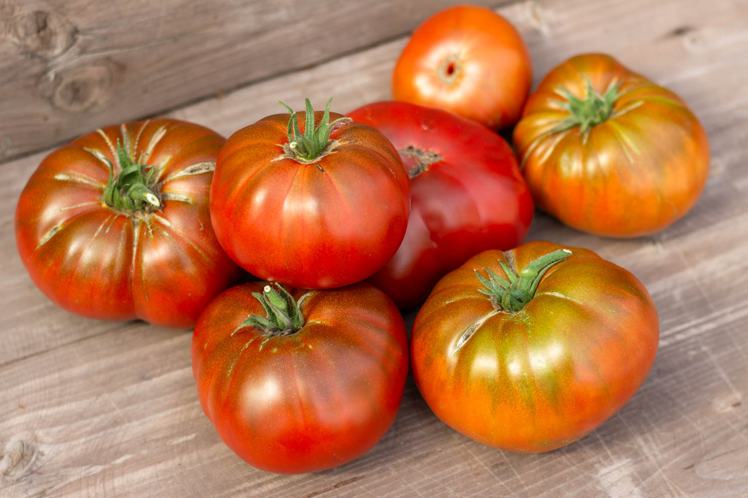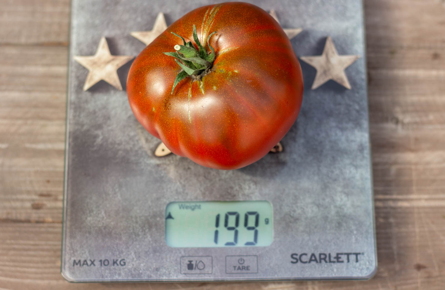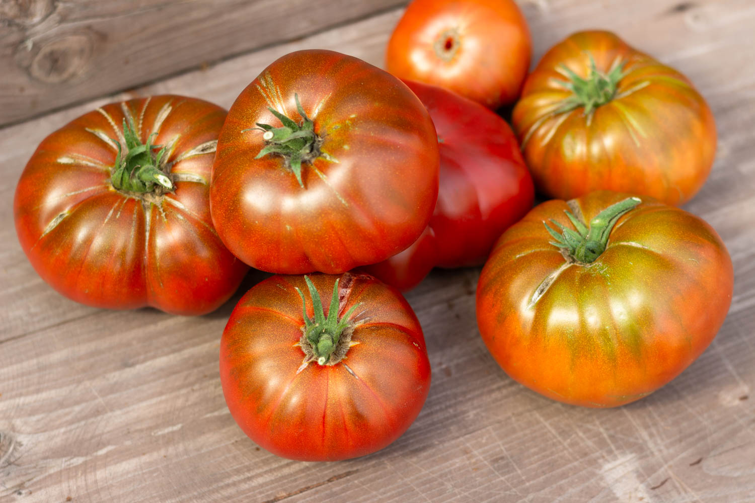 Высокорослый до 1,8м, среднеспелый. Плоды плоскоокруглой формы, с пышными плечиками и складками, шоколадного цвета снаружи, внутри бордового цвета, массой 200-300гр.
