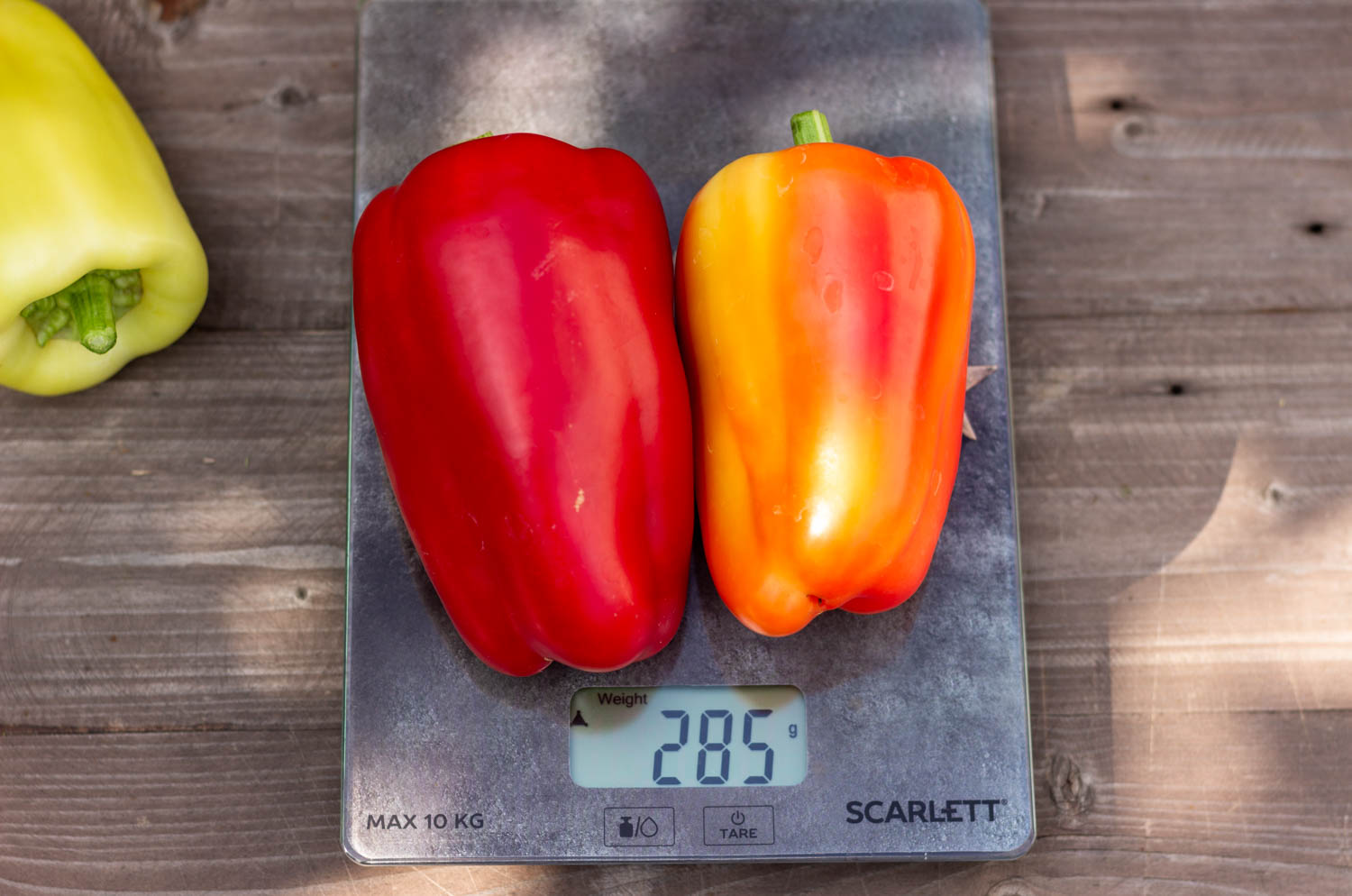 Низкорослый 50 см, раскидистый. Среднеспелый. Плоды удлиненно-кубовидные, массой 150гр. растут вертикально вверх. Созревание от кремового до малинового. Толщина стенки 7мм.