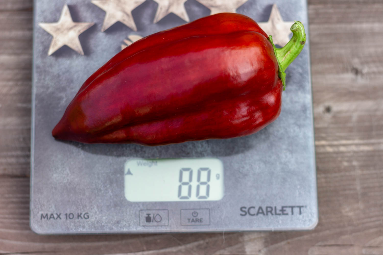 Низкорослый 35см, компактный, раннеспелый. Плоды конусовидной формы, массой 90гр. Созревание от фиолетового до бронзово-красного. Толщина стенки 4мм.