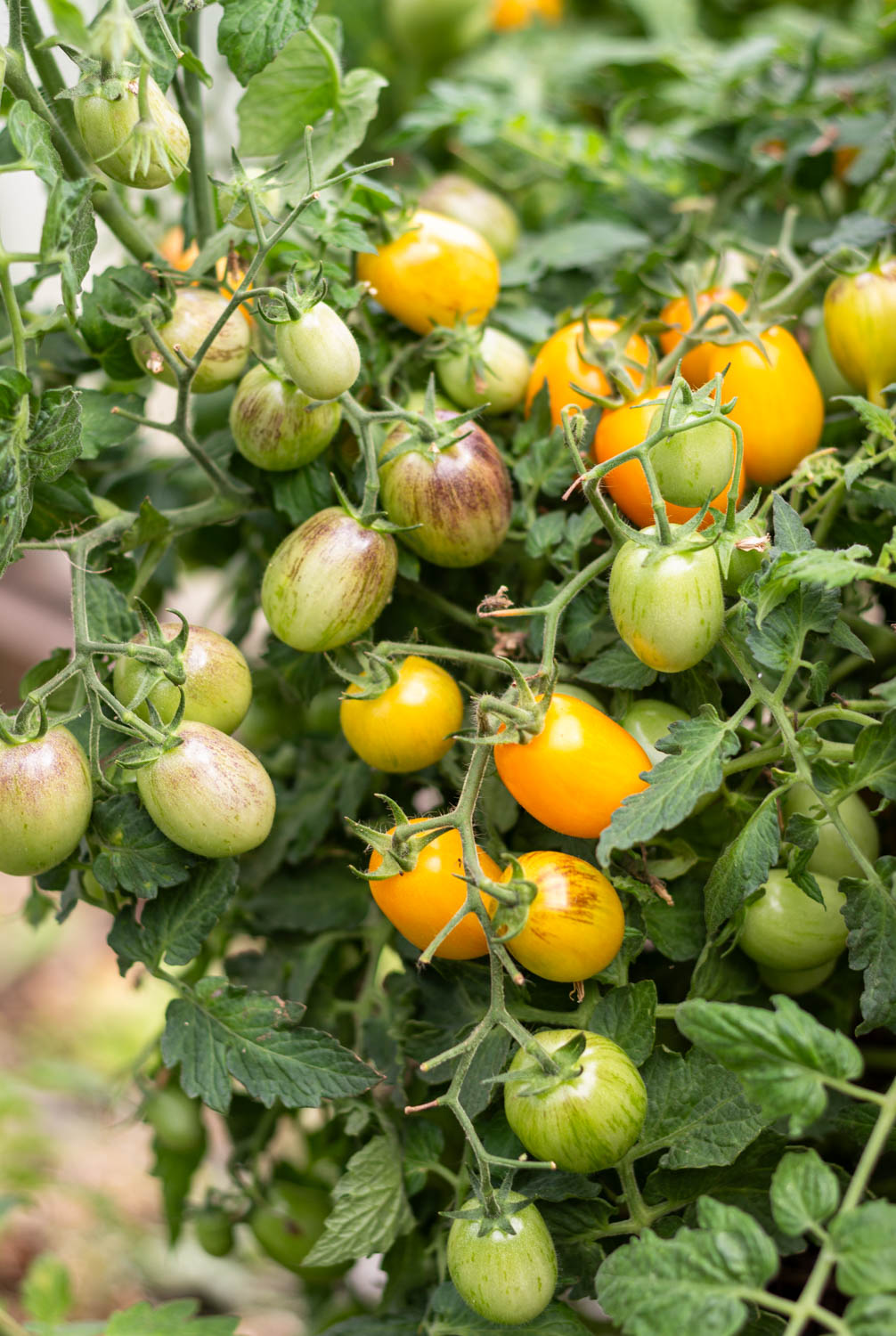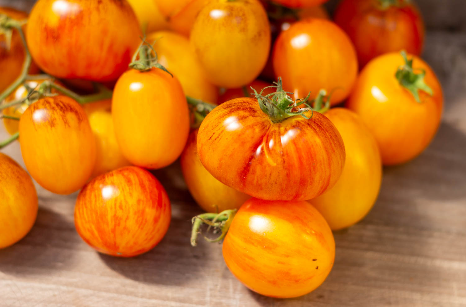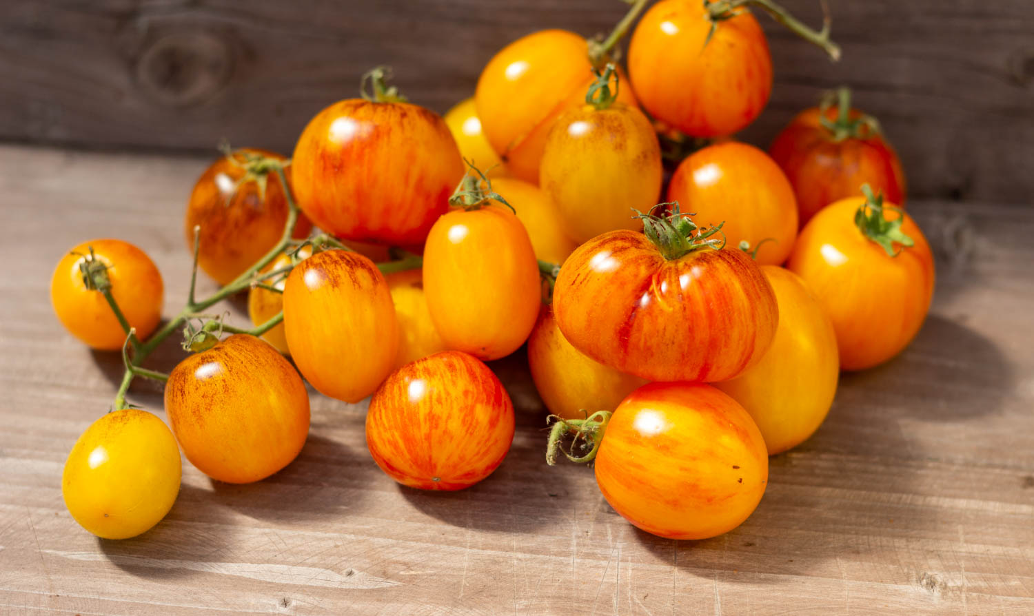 Низкорослый томат высотой около 50см, раннеспелый. Плоды сливки, жёлто-оранжевого цвета с малиновыми полосками и мазками антоциана, массой 15гр. Сладкие с тонкой кожицей. Не трескаются и не осыпаются. Куст и листва тонкого строения.
